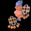 This style of earrings draws on the Baroque style, using gold plating to restore the texture of pure gold. Colored zircons and pearls are used for embellishment, once again showing the luxury of the Baroque styles. These earrings are in clips not in piercings.